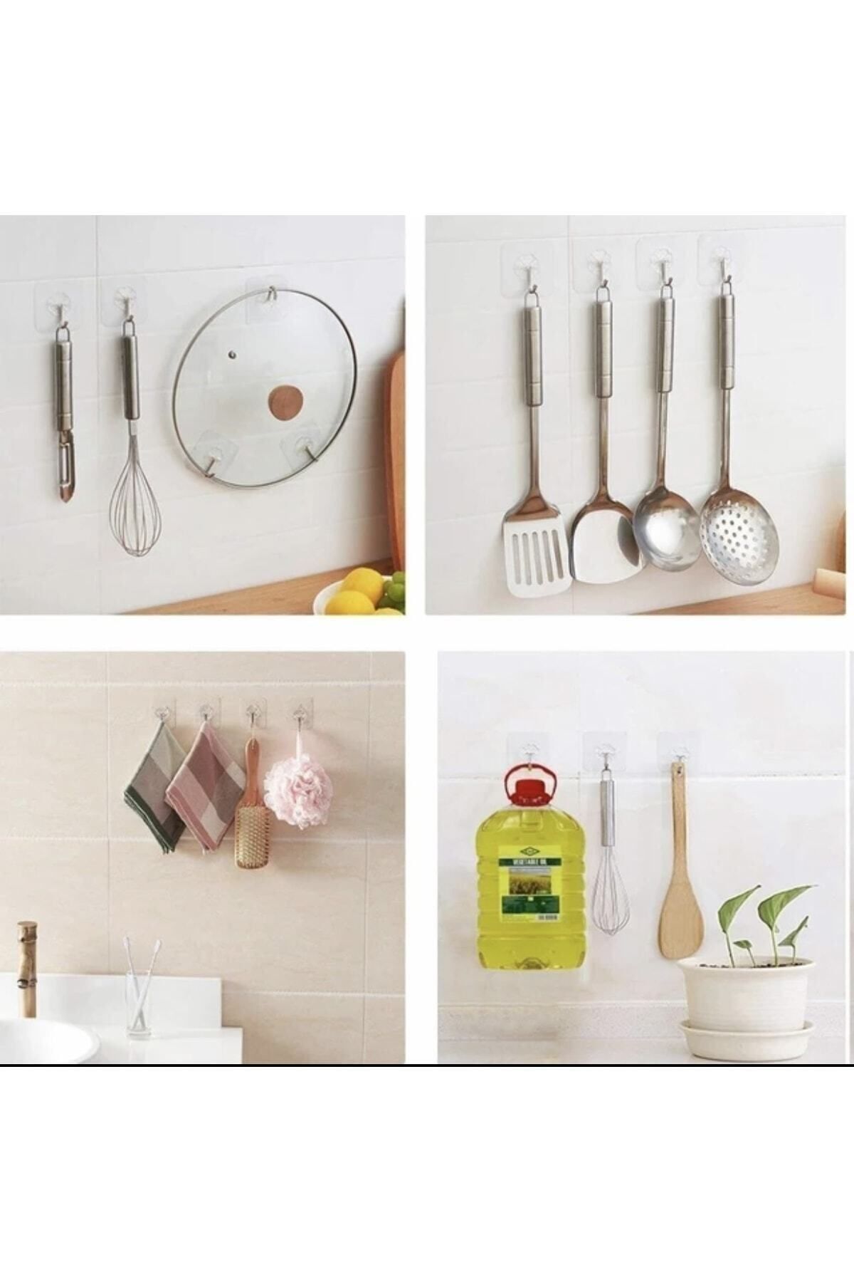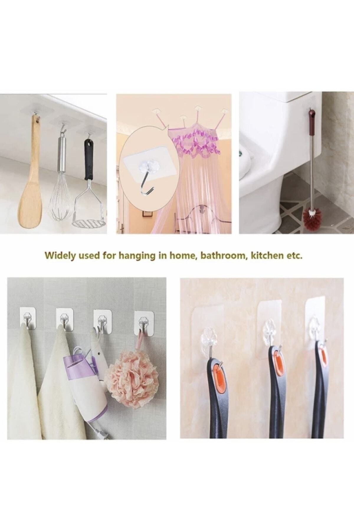 Şeffaf Kendinden Yapışkanlı Askı Seti 10 lu ; Şık şeffaf tasarım, güzel ev dekorasyonu için oldukça uygun olan neredeyse görünmez hale getirir. Çok amaçlı kullanım için şeffaf kanca Banyo, açık, mutfak, soketler, çöp kutuları, tuvalet fırçaları, saksılar, resimler ve daha fazlası dahil olmak üzere dekorasyonlarda yaygın olarak kullanılmaktadır. ; Nasıl kurulur ? ; 1. Yapışkan kanca kurmadan önce, yüzeyin temiz, kuru, toz ve yağdan arındırılmış olduğundan emin olun ve önce kurulayın. ; 2. Koruyucu film 'in arkasını yırtın ve parmaklarınız yapıştırıcıya dokunmayın. ; 3. Herhangi bir pürüzsüz yüzeye yapıştırın ve herhangi bir kabarcıkları çıkarmak için sıkıca bastırın. ; 4. Ürünün sağlam ve sabit olmasını sağlamak için herhangi bir ürünü asmadan önce 12 saat bırakmanız tavsiye edilir. ; Paket içeriği :10 adet şeffaf yapışkanlı askı ;