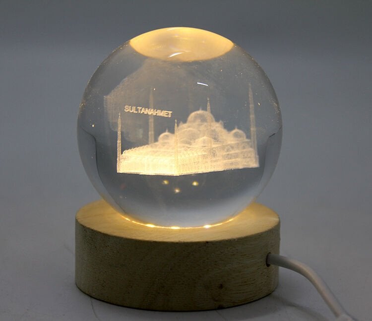 3D İSTANBUL TEMALI KRİSTAL CAM KÜRE LED LAMBA MODEL 1Ürün Özellikleri3D İstanbul Temalı Kristal Cam Küre Led Lamba Model 1, ahşap soketli tasarımı ve kristal camdan üretilmiş küresiyle şık bir aydınlatma aksesuarıdır. Küre içinde yer alan Sultanahmet Camii modeli, detaylı işçiliği ve 3D görünümüyle İstanbul'un tarihi güzelliklerini zarif bir şekilde yansıtır. Led aydınlatma özelliği, mekânınıza hoş bir ambiyans katarken, ahşap soket kısmı doğal ve sıcak bir görünüm sağlar. Hem ev hem de ofis dekorasyonunda kullanılabilecek bu ürün, İstanbul temalı hediyeler arayanlar için mükemmel bir seçenektir.Paket İçeriği1 adet 3D İstanbul Temalı Kristal Cam Küre Led Lamba Model 1