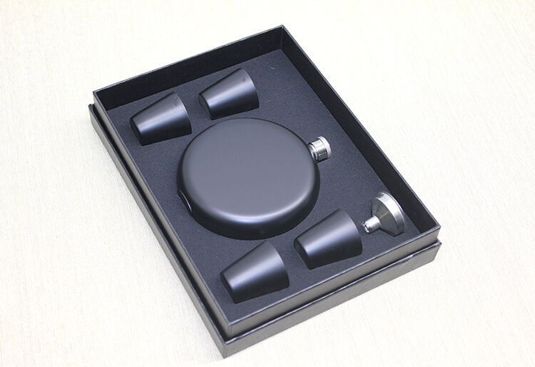 1 Adet 4 Shot Bardaklı Yuvarlak Siyah Matara Seti