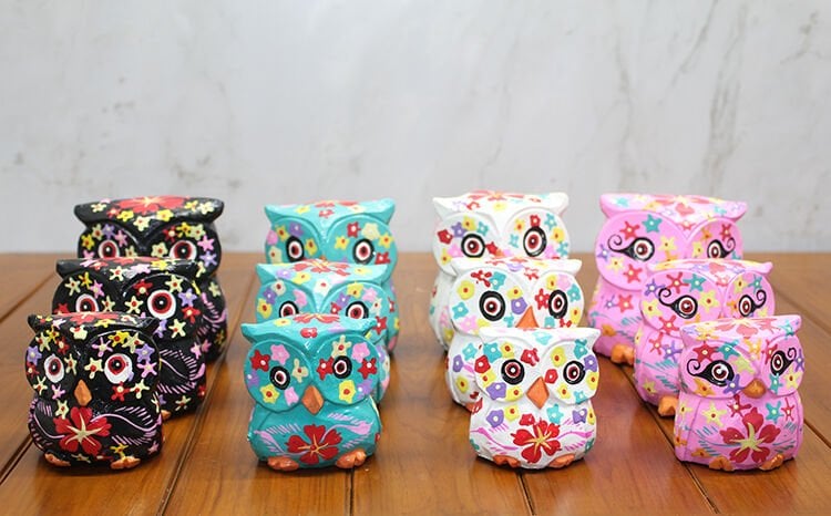 AHŞAP 3'LÜ BAYKUŞ SETİ MODEL 3Ürün ÖzellikleriCanlı ve renkli tasarımıyla dikkat çeken ahşap 3'lü baykuş seti, dekorasyonunuza enerjik ve sanatsal bir hava katmak için tasarlanmıştır. Set içerisinde 7 cm, 8 cm ve 10 cm boyutlarında üç farklı baykuş figürü bulunmaktadır. El işçiliğiyle boyanmış bu özel tasarım, ev ve ofis dekorasyonuna renkli bir dokunuş sağlar. Kaliteli ve dayanıklı ahşap malzemesi sayesinde uzun ömürlüdür. Raf, masa, vitrin veya kitaplık gibi alanlarda dekoratif amaçlı kullanılabilir.Not: Ürün farklı renk setlerinde mevcuttur ve stok durumuna göre karışık gönderim yapılmaktadır.Paket İçeriği1 adet Ahşap 3'lü Baykuş Seti Model 3
