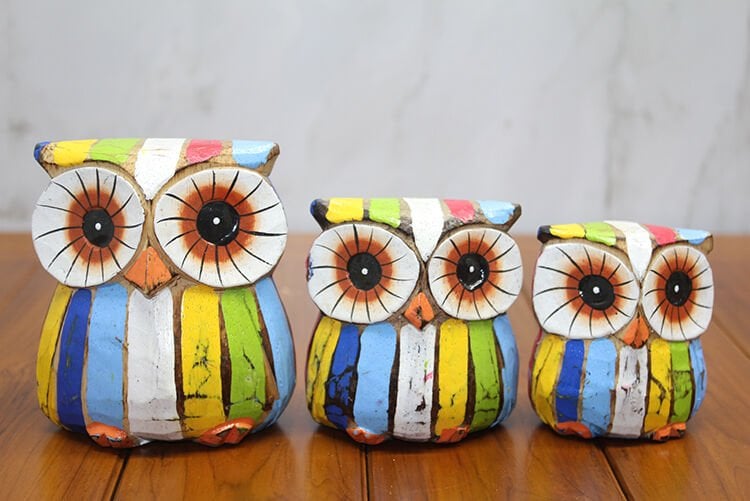 AHŞAP 3'LÜ BAYKUŞ SETİ MODEL 4Ürün ÖzellikleriDoğal ahşaptan üretilmiş 3 farklı boyuttaki baykuş figürlü dekoratif set, ev ve ofis dekorasyonuna şık ve sanatsal bir hava katmak için tasarlanmıştır. Set içerisinde 7 cm, 8 cm ve 10 cm boyutlarında üç farklı baykuş figürü bulunmaktadır. El işçiliği ile detaylandırılmış bu özel tasarım, hem klasik hem de modern dekorasyon tarzlarına uyum sağlar. Kaliteli ve dayanıklı ahşap malzemesi sayesinde uzun ömürlüdür. Raf, masa, vitrin veya kitaplık gibi alanlarda dekoratif kullanım için idealdir.Paket İçeriği1 adet Ahşap 3'lü Baykuş Seti Model 4