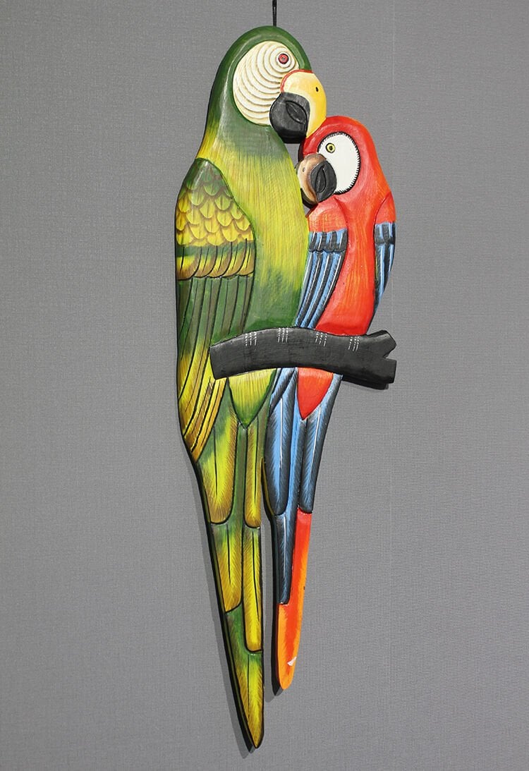 AHŞAP DUVARA ASMALI 2'Lİ PAPAĞAN MODEL 1 Ürün ÖzellikleriEl işçiliği ile üretilmiş dekoratif ahşap papağan figürü, ev ve ofis dekorasyonuna tropikal bir hava katıyor. Canlı renkleri ve detaylı işçiliği sayesinde duvar dekorasyonu için şık bir alternatif sunar. Ahşap malzemesi sayesinde uzun ömürlü ve dayanıklıdır. Özel olarak tasarlanmış bu model, 75 cm boyutundadır ve kolayca asılabilir yapıya sahiptir.Paket İçeriği1 adet Ahşap Duvara Asmalı 2'li Papağan