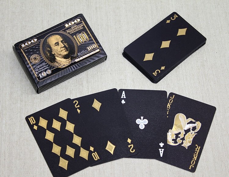1 adet Altın Dolar Tasarımlı Siyah İskambil Oyun Kartı Destesi