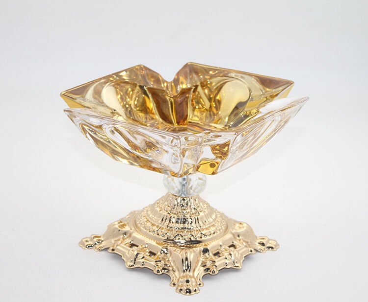 CAM KÜLLÜK MODEL 4Ürün ÖzellikleriCam Küllük Model 4, şık ve dekoratif tasarımı ile hem günlük kullanım hem de özel mekanlar için idealdir. Kristal cam ve altın renkli detaylara sahip metal ayaklarıyla lüks bir görünüm sunar. Yüksek kaliteli cam malzemesi sayesinde uzun ömürlü ve dayanıklıdır. Modern ve zarif tasarımıyla ev, ofis, restoran veya otel gibi mekanlarda kullanıma uygundur. Kolay temizlenebilir yüzeyi ile hijyenik bir kullanım sağlar.Paket İçeriği1 Adet Cam Küllük Model 4