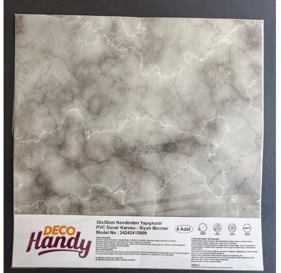 30x30 Cm Pvc Duvar Karosu 4'lü Paket - Mermer Desenli SiyahEv dekorasyonunda şıklık ve dayanıklılığı bir arada sunan 30x30 cm ebatlarında mermer desenli beyaz PVC yer karosu, modern ve estetik bir görünüm arayanlar için ideal bir seçenektir. 4'lü paket olarak sunulan bu karolar, hem kolay uygulanabilirliği hem de uzun ömürlü yapısıyla dikkat çekiyor. Gerçek mermerin doğal güzelliğini ve zarafetini yansıtan bu PVC karolar, suya ve neme karşı dayanıklılığı ile banyo, mutfak gibi alanlarda da rahatlıkla kullanılabilir. Kolay temizlenebilir yapısı ve leke tutmaz özelliğiyle, yoğun kullanıma uygun olan bu karolar, evinize değer katarak yaşam alanlarınızı dönüştürmeye yardımcı olur.