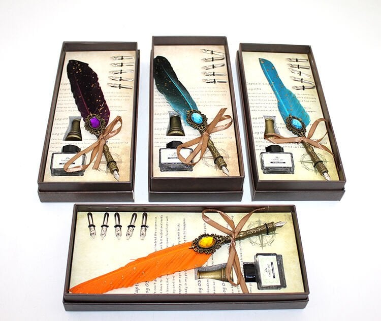 DIVIT HOKKA SETİ MODEL 1Ürün ÖzellikleriDivit Hokka Seti Model 1, renkli ve taşlı tasarımıyla hem estetik hem de işlevsel bir yazı setidir. Set içerisinde yer alan tüy divit, zarif taş detayları ve renkli tüyüyle yazı yazmayı daha keyifli hale getirir. Hokka, mürekkebinizi şık bir şekilde saklamanızı sağlarken, setin nostaljik ve zarif tasarımı, masa dekorasyonu için de idealdir. Geleneksel yazı sanatlarını sevenler ve özel hediye arayanlar için mükemmel bir seçenektir.Not: Ürün farklı renklerde mevcuttur ve stok durumuna göre karışık gönderim yapılmaktadır. Paket İçeriği1 adet Divit Hokka Seti Model 1