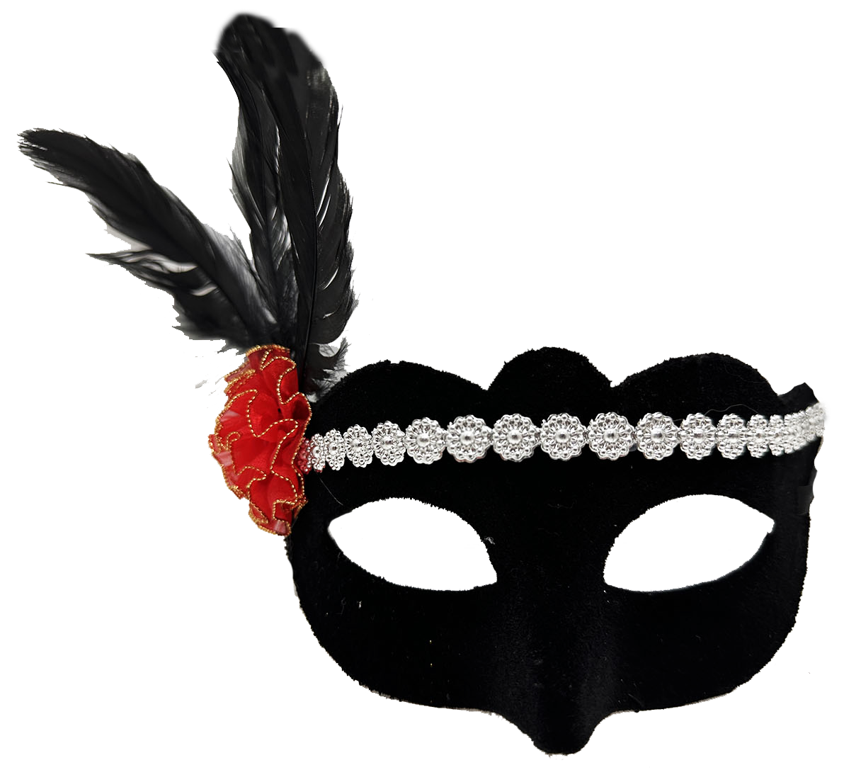 GÜMÜŞ DANTELLİ KIRMIZI GÜL TASARIMLI PARTİ MASKESİÜrün ÖzellikleriSiyah süet kaplamanın şıklığı, gümüş dantelın zarifliği ve kırmızı gülün romantizmiyle buluştu. Bu özel tasarımıyla balolar, maskeli balolar veya romantik davetler için mükemmel bir seçim. Yumuşak süet kaplaması sayesinde tüm gece konforla takabilir, göz alıcı bir görünüm sergileyebilirsiniz.Ölçüler: 18x20 cmPaket İçeriği1 adet parti maskesi