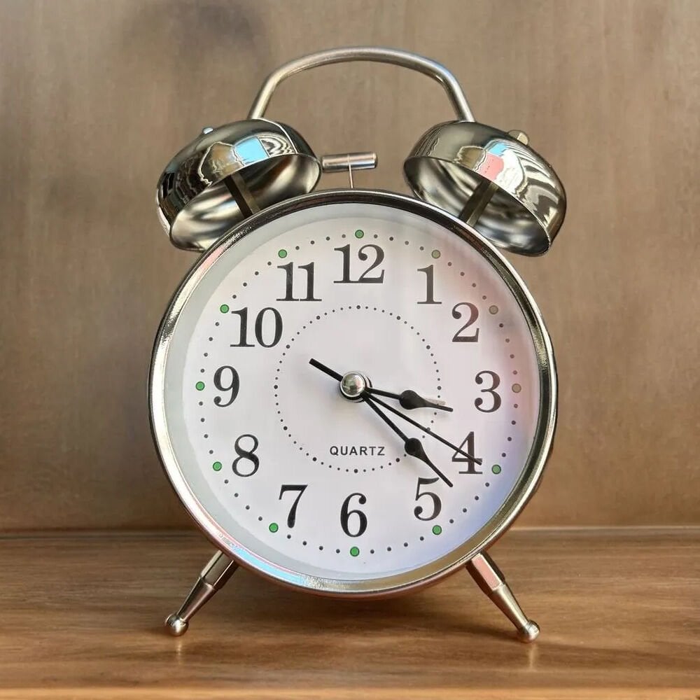 GÜMÜŞ METAL ALARMLI MASA SAATİÜrün ÖzellikleriGümüş Metal Alarmlı Masa Saati, 13 cm x 8.5 cm boyutunda olup ofisinize, masanıza, kitaplığınıza vb. koymak istediğiniz her yere şık bir aksesuar saat olarak yerleşebilir. Gümüş renkli alarmlı masa saati, alarm çaldığında oldukça yüksek ses vermektedir, böylece sizi uyandırmaya yetecek kadar güçlüdür. Metal gümüş çalar saat, son zamanların en trend masa saati çeşitlerinden biridir.Paket İçeriği1 Adet Gümüş Metal Alarmlı Masa Saati