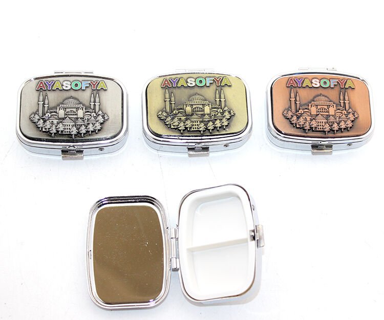 İSTANBUL TEMALI ENFİYE KUTUSU HAGİA SOPHİA (AYASOFYA) BASKILIÜrün Özellikleri5,5 cm boyutlarındaki İstanbul temalı enfiye kutusu, Ayasofya'nın zarif baskısıyla süslenmiştir. Metal malzeme ile üretilmiş olan bu kutu, hem estetik hem de dayanıklı bir yapıya sahiptir. Ayasofya'nın tarihi dokusunu yansıtan bu tasarım, kutuya geleneksel bir hava katmaktadır. Hem geleneksel enfiye kullanımı hem de dekoratif amaçla mükemmel bir aksesuar olarak kullanılabilir.Paket İçeriği1 adet İstanbul temalı enfiye kutusu (Ayasofya baskılı)