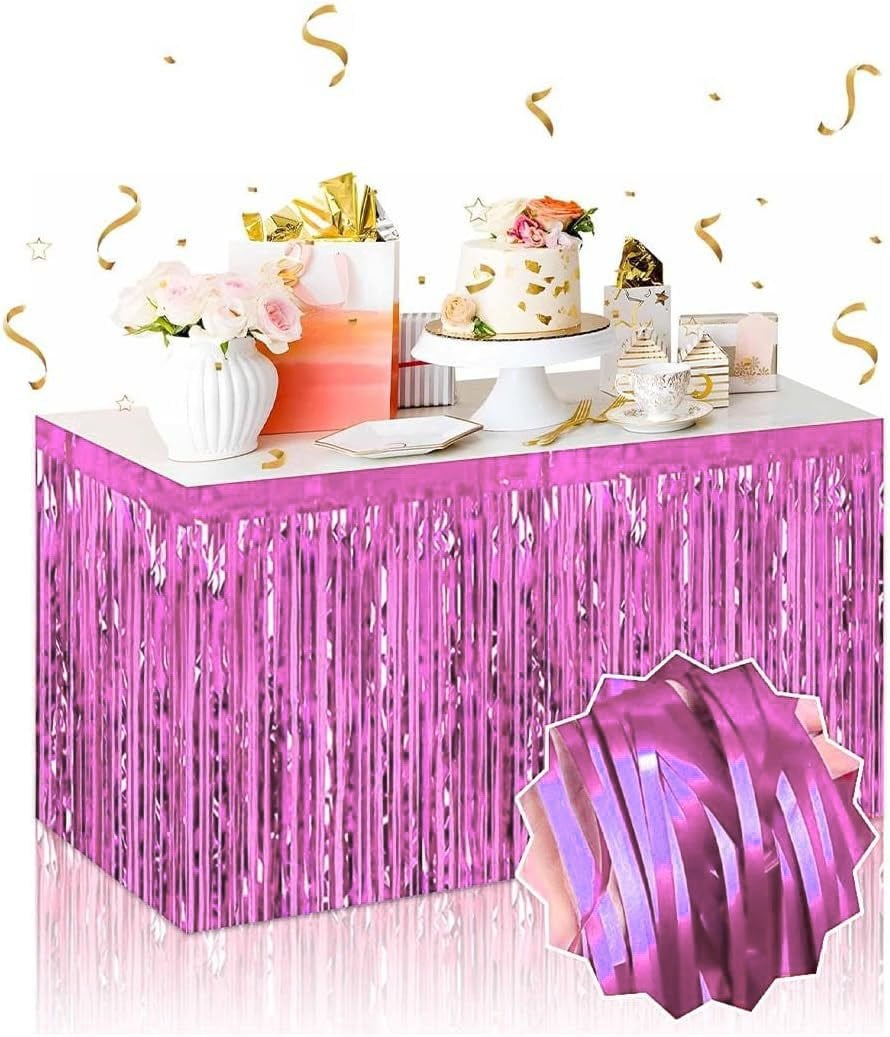 1 adet Kendinden Yapışkanlı Pembe Metalize Püsküllü Masa Eteği (75 x 275 cm)