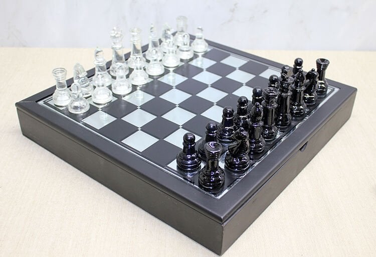 36x36 cm boyutundaki kutulu cam satranç seti, şeffaf ve siyah cam taşlarıyla hem şık hem de dikkat çekici bir tasarıma sahiptir. Parlak yüzeye sahip satranç tahtası cam materyalden üretilmiş olup, sağlam yapısı sayesinde uzun ömürlü kullanım sağlar. Cam satranç taşları estetik görünümüyle masaüstü dekorasyonuna da katkı sunar. Özenle hazırlanmış kutusu sayesinde taşlar düzenli şekilde saklanabilir ve taşınabilir. Hem hediye hem de bireysel kullanım için ideal bir zeka oyunu setidir.