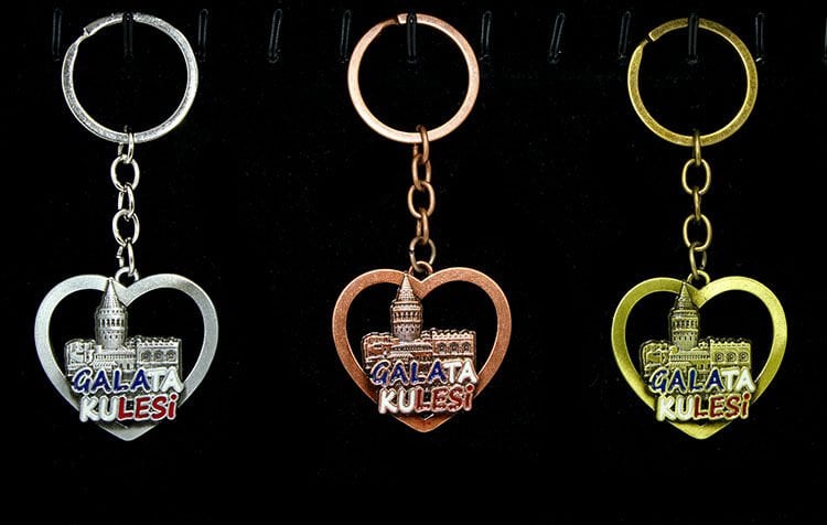 METAL GALATA KULESİ ANAHTARLIK KALP TASARIMLIÜrün Özellikleri10 cm boyutlarındaki kalp tasarımlı metal Galata Kulesi anahtarlık, İstanbul'un simgesel yapılarından Galata Kulesi'ni zarif bir şekilde yansıtan şık bir aksesuardır. Kalp şeklindeki tasarımı, anlamlı ve estetik bir dokunuş ekler. Metal malzeme sayesinde uzun ömürlü ve dayanıklı olan bu anahtarlık, hem işlevsel hem de dekoratif bir aksesuar olarak kullanılabilir. İstanbul'a ait özel bir hatıra olarak mükemmel bir seçimdir.Paket İçeriği1 adet kalp tasarımlı metal Galata Kulesi anahtarlık (tekli fiyat)