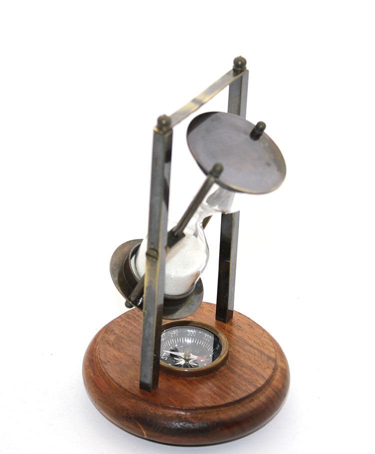PİRİNÇ PUSULALI KUM SAATİ MODEL 4Ürün ÖzellikleriBu pirinç pusulalı kum saati, zarif bir tasarıma sahip olup, ahşap tabanı ve pirinç detayları ile nostaljik bir hava yaratır. Kum saati, zamanı ölçmenin yanı sıra dekoratif bir obje olarak da kullanılabilir. Alt kısmında bulunan pusula detayı, fonksiyonel ve estetik bir birleşim sunar. Şık yapısı, hem ofis hem de ev dekorasyonuna mükemmel uyum sağlar. Yüksek kaliteli pirinç malzeme, uzun süreli kullanım imkanı sunarken, ahşap taban ise ürüne sıcak ve doğal bir görünüm kazandırır.Paket İçeriği1 Adet Pirinç Pusulalı Kum Saati Model 4