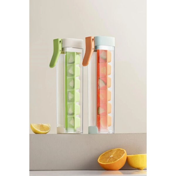 Pratik basmalı küp buz kalıbı, modern ve kullanıcı dostu tasarımıyla buz hazırlamayı son derece kolaylaştırır. Özel mekanizması sayesinde buz kalıplarını ters çevirmeye veya tek tek uğraşmaya gerek kalmadan sadece sap kısmına bastığınızda buzlar doğrudan bardağınıza dökülür. Dikey formu sayesinde buzdolabı veya dondurucu içinde fazla yer kaplamaz, verimli kullanım sağlar. Gıda temasına uygun plastikten üretilmiştir ve farklı içeriklerde buz hazırlamaya uygundur. Sade suyla birlikte meyve parçalı, aromalı veya kahve/çay bazlı küpler oluşturulabilir. Ev kullanımı dışında ofis, piknik ve kamp gibi alanlarda da içeceklerinizi hızlıca soğutmak için idealdir. Hem hijyenik hem de ergonomik bu ürün, klasik buz kalıplarında yaşanan buz çıkarma zorluğuna çözüm sunar.