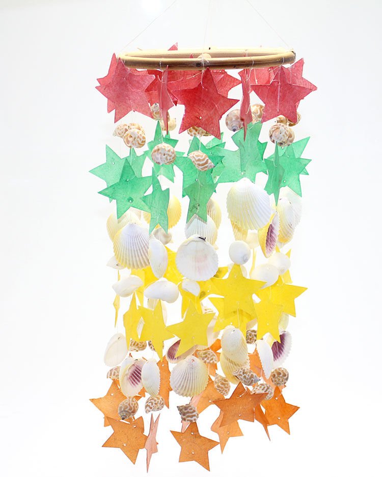 SEDEFLİ RÜZGAR ÇANI MODEL 4Ürün ÖzellikleriSedefli Rüzgar Çanı Model 4, renkli yıldızlı tasarımı ile şıklığı ve zarafeti birleştiriyor. Renkli yıldızlar, hem dekoratif bir unsur olarak hem de pozitif enerjiyi simgeleyen detaylarla çanı eşsiz kılar. Rüzgarla hareket ettiğinde hoş ve melodik bir ses çıkarır. Hem bahçe, balkon hem de iç mekanlarda kullanılabilecek şekilde tasarlanmış olup, estetik ve fonksiyonel özelliklere sahiptir. Zarif ve canlı tasarımı, herhangi bir mekanın havasını anında değiştirir. Hediye olarak da harika bir tercihtir.Paket İçeriği1 adet Sedefli Rüzgar Çanı Model 4
