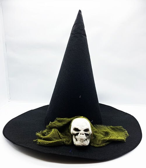 SİYAH RENK YEŞİL DUVAKLI KURU KAFA TEMALI CADI ŞAPKASI 35X38 CMÜrün Özellikleri